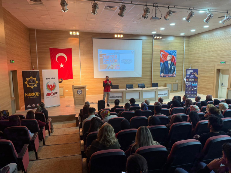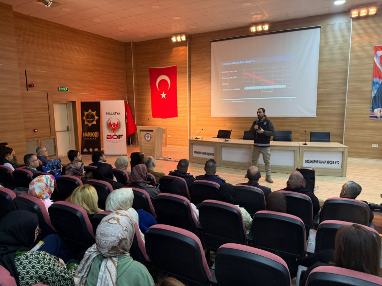 Üniversitemiz Doğanşehir Vahap Küçük Meslek Yüksekokulu'nda Malatya Emniyet İl Müdürlüğünden görevli polis memurları tarafından bağımlılık ve siber suçlarla mücadele ile ilgili bilgilendirme amacıyla eğitim düzenlendi.