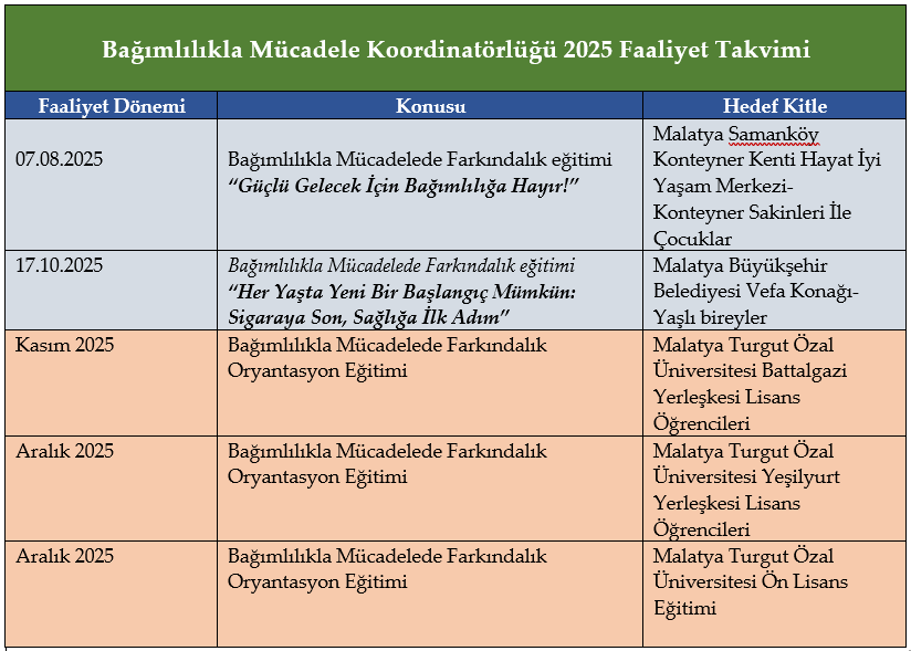 Bağımlılıkla Mücadele Koordinatörlüğü 2025 Yılı Faaliyet Takvimi